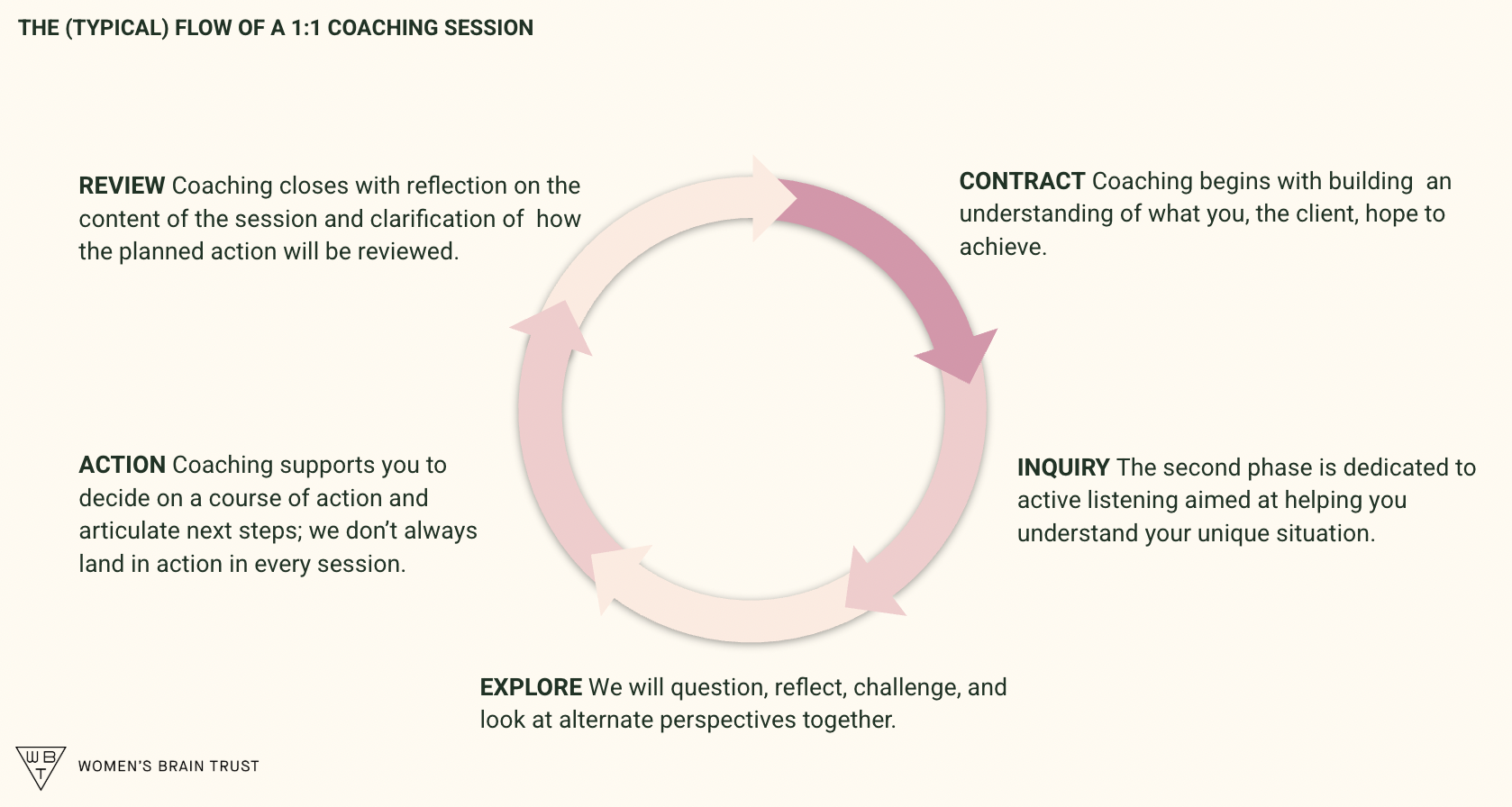 Everyone’s coaching journey is unique; the process is entirely your own. That said, you can expect the following from coaching: